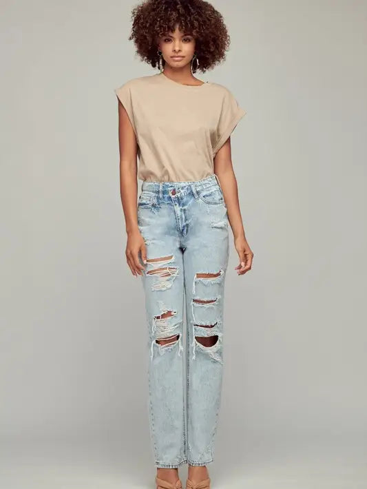 Criss Cross Distressed Denim
