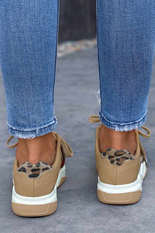 Leopard Faux Leather Lace Up Sneakers Shoes